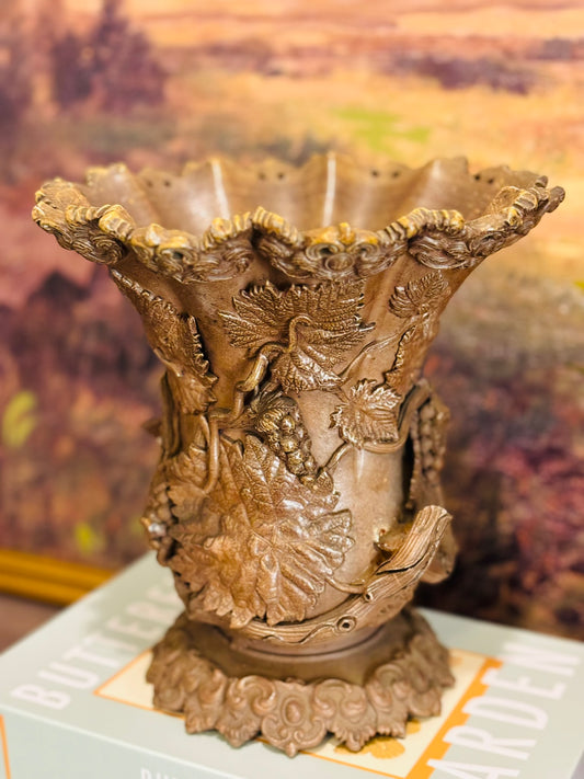 19th Century France Brown Salt Vase with Applied Fruit Vine Decoration