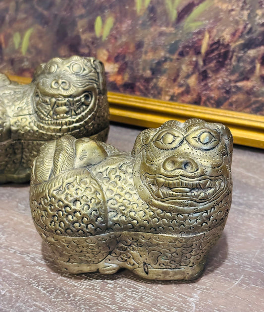 2 Antique Foo Dog boxes 4.75 l 2.75 w 4 h